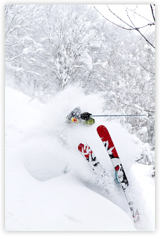 POWDER SNOWの森を駆け抜けるツリーランの魅力は、簡単にオフピステと表現できない感覚と感動に出会える事にあります。極上のパウダーと複雑な自然の地形を活かしたフリーライディング、自然のスロープに存在するクォーターパイプのような地形を滑り上がる感覚は、言いようのない快感を体験できます。